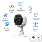 Capture every detail inside your home with crystal-clear 2K high definition video with this indoor security camera. Easily see what your baby is holding or what your pet is playing with.Create custom activity zones and control the alerts you receive.Get instant push notifications when motion or a person is detected, Get notifications that matter, so you'll know if its your pet playing around or if someone is actually there.Fully compatible with Amazon Alexa and Google Assistant, use your simple voice command to view your indoor security camera.Easily get your home security footage up on a larger TV display.Never truly leave home with the built-in 2-way audio. Use as a pet camera with phone app to comfort your pet from anywhere in the world. Keep your family safe with cameras for home security indoor by warding off intruders.Never miss a thing that goes on, even at night thanks to the integrated INFRARED system on this indoor camera which provides 30 feet of night vision.View your WiFi camera feed from two different smart phone devices. Now mom and dad can both see what's happening at home with a single camera, making keeping an eye on the little ones just a bit easier.Save footage continuously on up to a 256 GB microSD card (not included) or get cloud storage which saves 30-day video history and provides additional benefits such as motion tracking, baby crying detection and more.Simple and Easy setup on your device.2 pack
