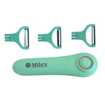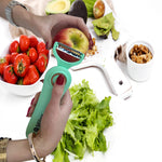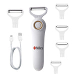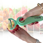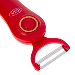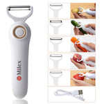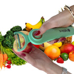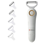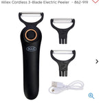 The Electric Insta-Peeler is easy to use, peels a variety of fruits or vegetables of various shapes and textures with the press of a button, quickly and effectively.Comes with 5 premium stainless steel blades to peel all your fruits and vergetables.Conveniently peel or slice potatoes, sweet potatoes, tomatoes, apples, pears, oranges, cucumber, cabbage, beet, rutabaga, radish, papaya and more.5 in 1 with Three Peeling Heads each for Different Effects.One-edge Peeler - better for peeling thicker veggies and fruit.Y-shaped Peeler - can peel fruits and vegetables in two-ways - Great for thinner fruits and vegetables.Julienne Peeler - creates julienne strips of food for salads.or garnishes.Ribbon Blade: A perfect tool for making veggie ribbons out of carrots,cucumbers and otherveggies for a great salad recipe.Serrated Blade: Expertly removes tomato, lemon and lime peel. Perfect for peeling other citrus fruits. PATENT