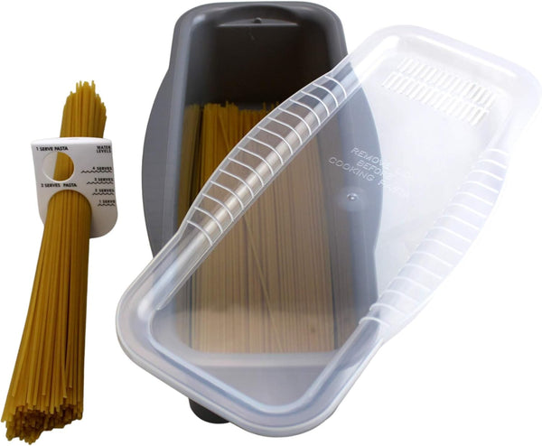 MICROWAVE PASTA COOKER Perfect for making perfectly portioned pasta  in minutes. Features a measuring tool for serving,  making pasta portions before cooking  foolproof. Simply add water to the fill line,...