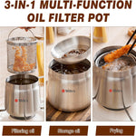 Efficient Filter Built-in Fine Mesh Filter: This stainless steel Oil Strainer Pot features a built-in fine mesh filter for efficient filtering of cooking oil, ensuring a clean and healthy kitchen...