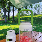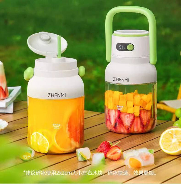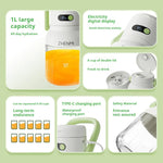 Power off in seconds after opening the lid, safe and secure juice extraction, automatic power off when the cup lid is separated to prevent accidental injury, safe for use by the elderly and children Intelligent power, real-time display, relieve power anxiety, real-time perception of remaining power Tritan material, maternal and infant bottle grade material, does not contain bisphenol A Direct drinking with spring tube, one-handed opening, safe and leak-proof The cup wall spoiler rib design, no dead angle for whipping, double-click to automatically squeeze juice, no need to filter, the juice entrance is delicate and smooth Stainless steel 10-leaf blade head, 50 seconds to juice, powerful dual-power motor, 18000 rpm, delicate and filter-free, 360° whipping Dual-power motor powerful whipping, ice cubes become smoothies, let you squeeze juice in the hot summer, and enjoy smoothies at will It is both a juicer and a sports water cup, with a portable handle, worry-free travel 1200ml water filling capacity, 500ml juice extraction capacity