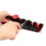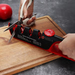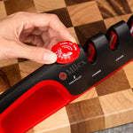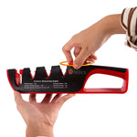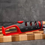 The Samurai age is not just another knife sharpener; it's a game changer in the world of culinary tools. Designed to resurrect old knives to their former glory, this innovative device employs adjustable angle dial, allowing you to customize the sharpening angle to perfectly suit your blade. Scissor Sharpening: Bid farewell to blunt scissors! The Samurai age isn't just for knives; it works its magic on scissors too, ensuring they're as sharp as ever. Comfort and Safety: With its soft-grip handle and non-slip rubber feet, the Samurai age ensures both safety and comfort during use, making kitchen prep a breeze. Longevity: By removing only microscopic amounts of metal with each use, the Samurai age extends the lifespan of your knives, ensuring they remain durable and undamaged. Whether you're a professional chef or a home cook, the Samurai age will revolu tionize your culinary experience, making kitchen tasks effortless and enjoyable. Rediscover the joy of cooking with knives that cut with precision and ease. Experience the difference the Samurai age can make in your kitchen.