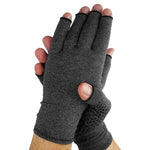 Providing compression therapy and gentle support. Compression gloves are made with a premium cotton-spandex blend that contours to the natural shape of your hand. fingerless compression gloves relieve arthritis pain by reducing stress on painful pressure points while easing aching and stiff muscles, tendons and joints. The non-slip texture of the arthritis gloves provides a secure grip on any item such as phones, tablet or coffee cup. Premium Arthritis Gloves are anatomically shaped and have been specifically designed to relieve arthritic pain in the fingers and hand. Clinically proven to increase blood flow and skin temperature. The Arthritis Gloves provide light compression and support.