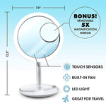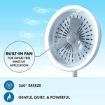 The LED Vanity Mirror with Cooling Fan features a quiet, powerful fan that distributes a 360-degree gentle breeze to keep your skin cool as you apply makeup. The adjustable 7.9”...