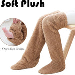Experience eternal comfort and warmth with plushwarmth long socks! Whether you have big thighs or small thighs, teddy bear socks are designed to provide the perfect fit for everyone. Say farewell to icy toes and welcome the embrace of pure coziness with our long fuzzy sock slippers for women. These delightful, teddy bear socks turn every moment at home into a haven of warmth and comfort, even in the chilliest of winter wonderlands. Knee high slippers for women fit perfectly above your knees, ensuring that your legs stay snuggled and cozy.Easily pop your toes out for added convenience - it's as simple as 1, 2, 3! Soft Material: Lined with super-soft fleece, these snuggs cozy socks knee high are crafted for everyday wear, ensuring comfort from morning to night, wherever you go.