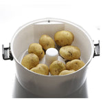 The Milex Electric Potato Peeler Potato mechanically peels large amounts of potatoes - Fast - Simple - Easy! Holds up to 1 kg of potatoes and peels them all in 2 to 4 minutes. Simply cut your potatoes into evenly sized pieces, add a little water, lock the translucent lid and turn on the switch to remove potato peels instantly! No Mess and Easy! It does everything for you at the touch of a button.Cut your prep time in Half with this amazing machine - Make Masked Potatoes, French fries, any potato dish in just minutes!