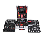 All tools are made of high quality chrome vanadium steel. The padlock included in delivery allows you to lock your suitcase at any time and store your tools safely. The edges are rounded and therefore protect against cuts to the hands. The level offers particularly precise viewing with three magnifying glasses. Our AREBOS toolbox with 1200 high-quality tools is optimally designed for use in the home, garage or workshop. The tools are ideal for both the DIYer and the professional craftsman. The complete set includes all common standard tools, such as hammers, wrenches, screwdrivers and various pliers. Furthermore, practical tools such as cable ties, gloves, hot glue gun and electrical tape are included. The sturdy metal case with tension locks ensures safe storage. In addition to a carrying handle, the case also has an extendable and height-adjustable telescopic handle. This means that the suitcase can also be pulled without any problems like a trolley, which is also supported by the integrated wheels. Predefined outlines make sorting tools easier. Four different levels ensure space-saving storage of utensils. With this suitcase, you have everything at hand and are always perfectly equipped. Key Features: