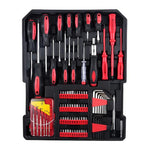 This tool box allows you to be ready for use quickly and can be transported mobile with the help of the carrying handle or the integrated wheels! This means that you are always ready for anything and that you have your assortment of tools at hand and well organized at all times.