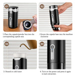 Portable espresso coffee maker compatible with capsules and coffee powder.Coffee basket can hold 20g coffee powder or 6-8g capsules, water tank can hold 110ML boiling water. [Easy to operate] Easy...