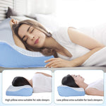 High density memory foam keeps the pillow supportive and comfortable. The ergonomic design is made from the natural curve of the head and neck - keeping the body in a comfortable state and reduces neck and back pain and alleviates shoulder stiffness. The high quality pillowcase fabrics are washable and durable. The front and rear sides of the pillow are of different heights to accommodate different sleeping postures. Wonderful gift for friends and family!